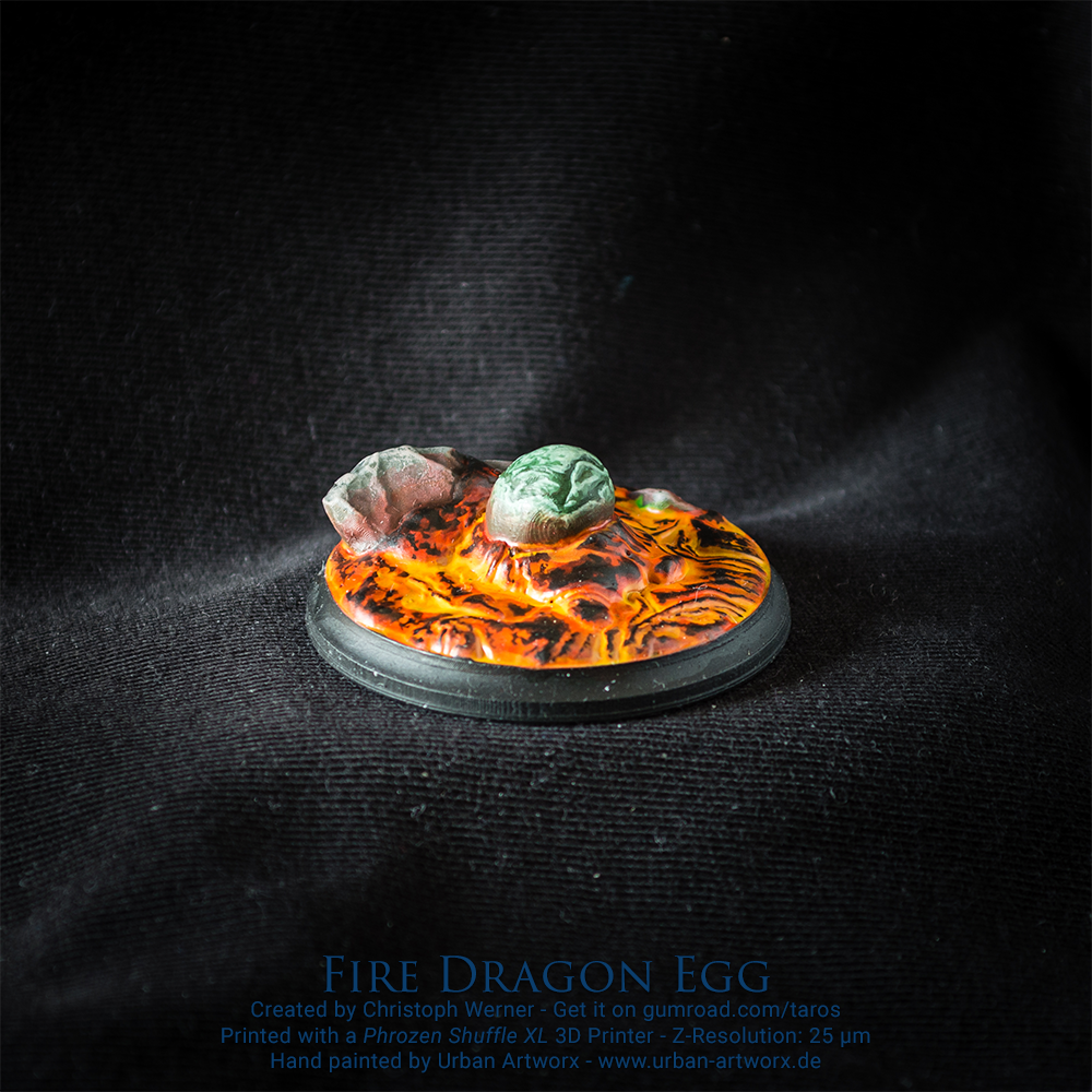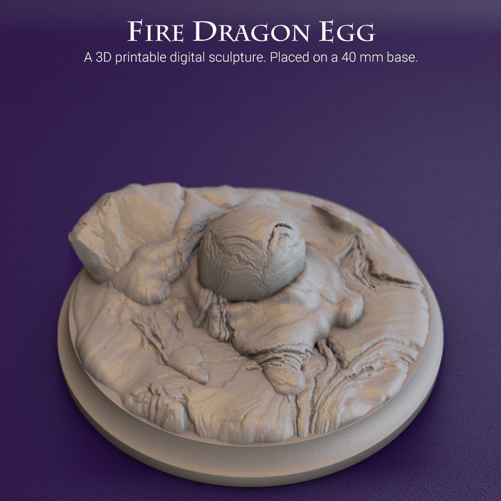 The Fire Dragon Egg is a 3D Printable Digital Sculpture for Tabletop games. The dragon placed his egg in Lava on a 40 mm Base.