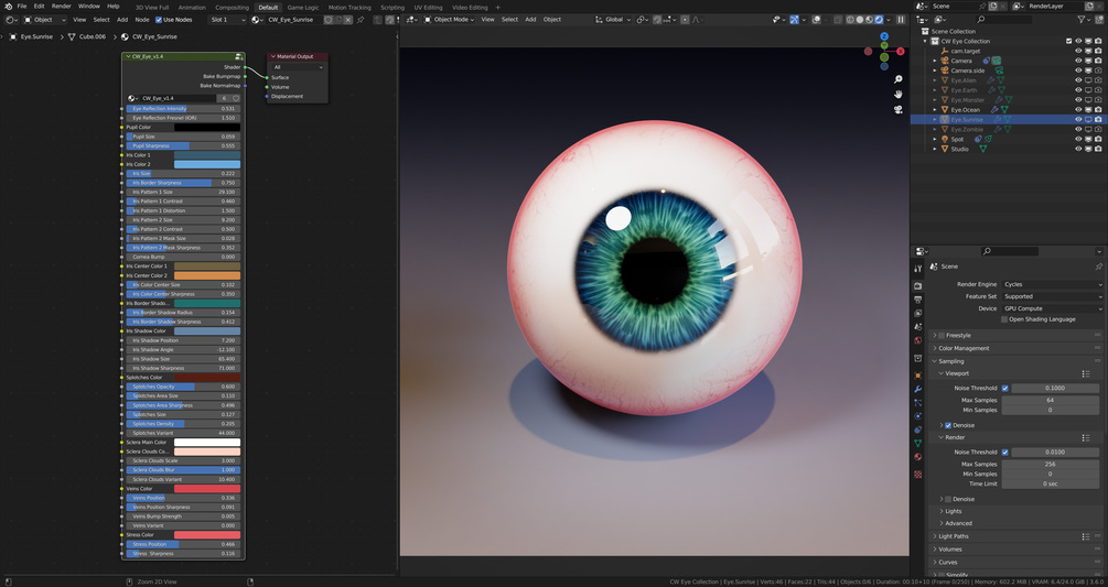 CW Eye in Blender 3.6. Eevee viewport mode. Also Cycles Renderer compatible.